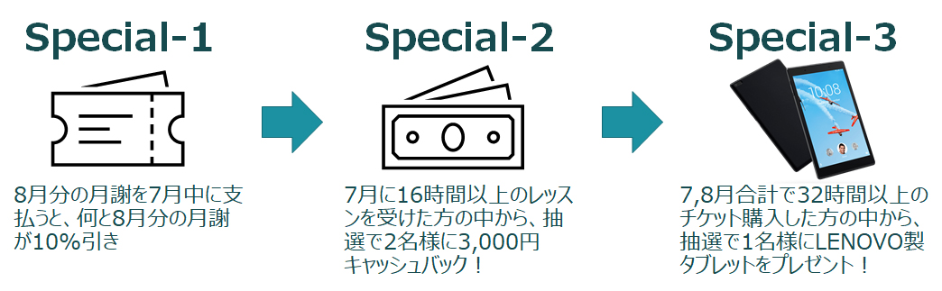 ・8月分のレッスンチケットを7月中に購入頂いた方全員が対象!